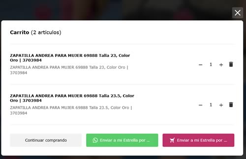 Ahora ya puedes pasarle tu pedido a tu Estrella Andrea, haciendo clic en el botón «enviar a mi Estrella Andrea por WhatsApp». Se abrirá tu aplicación de WhatsApp, buscas tu contacto de Andrea y le envias tu pedido.