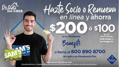 También puedes hacerte miembro visitando cualquiera de los locales de Sams o llamando al número 800 835 7267 en México.
