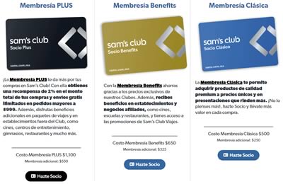 - Membresía Clásica de Sam’s Club: Esta membresía tiene un precio de $500 pesos al año. Con esta membresía tienes entrada a todos los Clubes de Sams del país y el resto del mundo, incluso en Estados Unidos. Tienes descuentos en el Club y en la tienda online. Te darán 1 membresía complementaria sin costo para un familiar o amigo. Y tienes acceso a 1 membresía más adicional a mitad de precio, a $250 pesos anuales. Además tendrás acceso a marcas exclusivas y presentaciones rendidoras.
