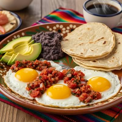 - Sirve los huevos acompañados del chirmol, frijoles refritos y tortillas calientes.