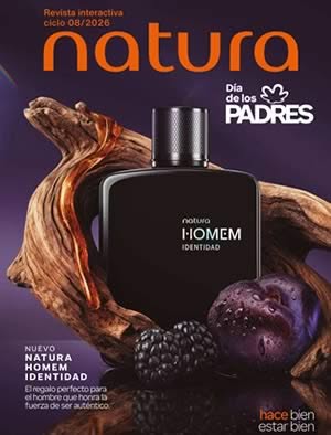 La gran novedad de esta revista es el Natura Homem Identidad (Pág. 1-2). Es un Eau de Parfum intenso que mezcla frutas negras con maderas latinoamericanas. Ideal para el hombre que busca una fragancia con carácter y sofisticación.
